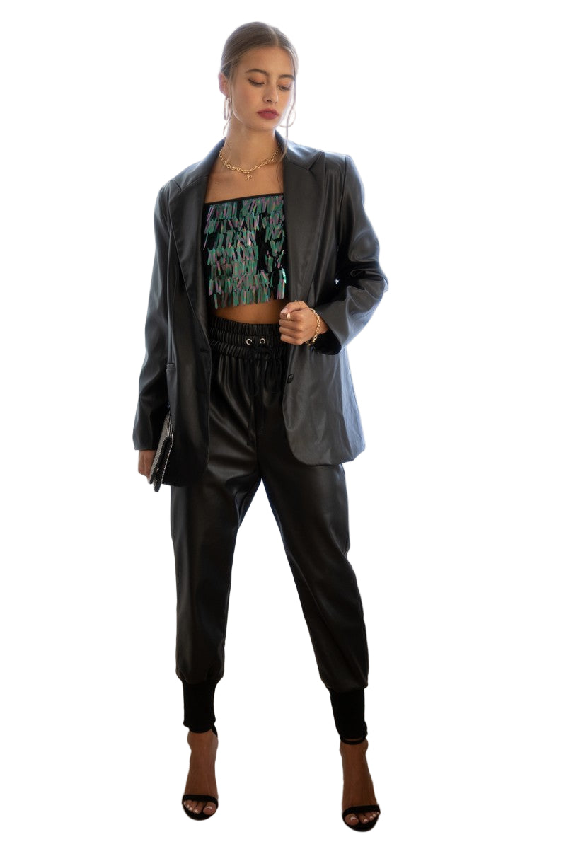 Step up your casual style with the Bella Joggers—crafted from soft faux leather for that edgy vibe without sacrificing comfort. These joggers feature an elastic waistband and cuffs, plus a matching drawstring that lets you customize the fit just right. Perfect for lounging, running errands, or adding a cool twist to your everyday look!